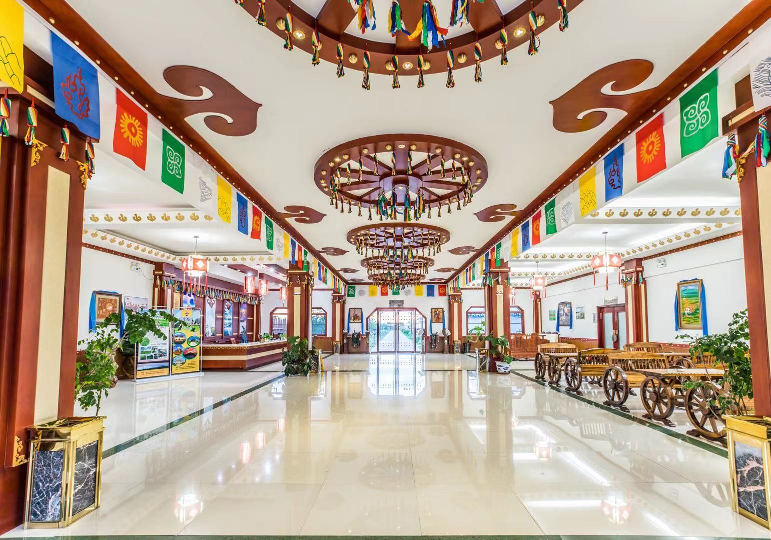 景區(qū)主體分為兩個部分分別是蒙元文化參觀區(qū)(大汗行宮宮殿區(qū))和京北草原娛樂中心兩部分,詳細內(nèi)容包括: 大汗行宮宮殿區(qū):占地30萬平方米,宮殿范圍內(nèi)由宏偉壯闊的宮門、代表民族信仰的長生天牌坊、戰(zhàn)場上的金戈鐵馬的還原場景、世界上最具特色的議事金帳、具有強烈宗教色彩并象征神在其位的敖包和世界上唯一的集佛教、道教、薩滿教于一體的祭天臺等建筑共同構(gòu)成景區(qū)中軸線。宮墻左側(cè)為元朝的發(fā)展史,記載了蒙古民族從原始逐水草而居的游牧生活到成吉思汗開國和元朝建立并發(fā)展壯大創(chuàng)造一片盛世的景象。生動的刻畫出在這茫茫大草原中曾經(jīng)興旺發(fā)達雄霸百年的蒙古民族征服世界,并創(chuàng)立了世界