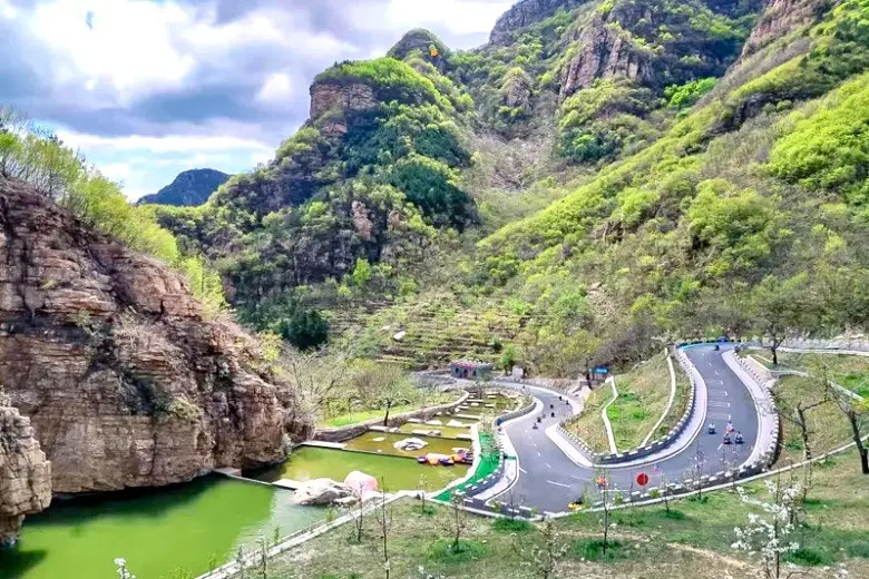 梨樹溝休閑小鎮(zhèn),坐落于北京市平谷區(qū)北部黃松峪鄉(xiāng)境內(nèi)。地處燕山山脈余脈,總面積9.16平方公里。這里群峰連綿,山勢險峻,最高海拔達千余米。群峰間,溝谷縱橫,曲折幽深,十里梨花大道貫通期間。栗樹谷,沿著清泉拾級而上,棵棵大古栗樹,粗大高聳,甚至幾人摟抱不來,只道是幾百上千年,實不知何代難紀年了。花木活字盆景,以一種灌木精心設(shè)計,精心梳理,精心剪扎,精心造型。經(jīng)幾十年培育,巧妙將綠植與書法與文字融為一體,堪稱天下一絕。冰景世界,梨樹溝海拔高,溫度低,更利用冬季及溝谷優(yōu)勢,打造冰掛、冰雕以及真花、真木、仿真動物冰凍其間的冰珀,奇絕新穎,令人嘆為觀止。置身小鎮(zhèn),不僅可觀覽這些奇觀妙景,更可親身體驗:山地滑車,2500米滑道,順勢滑下,豪情胸中起,耳邊快哉風(fēng)了。還有親子劃船、渾水摸魚等等。尤其冬時,一萬平米湖面,冰層厚達50厘米,盡可乘冰車享受滑冰樂趣了。